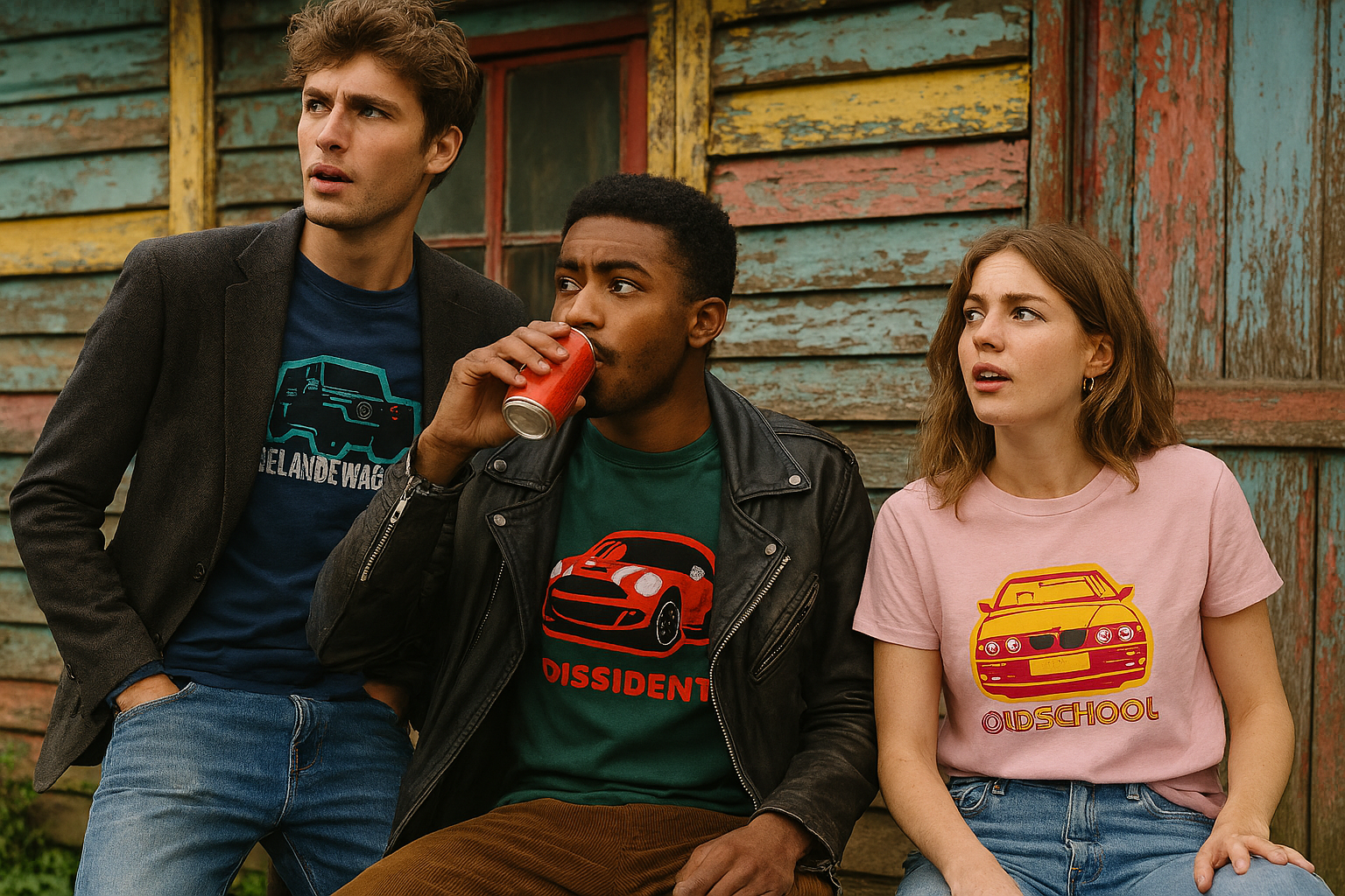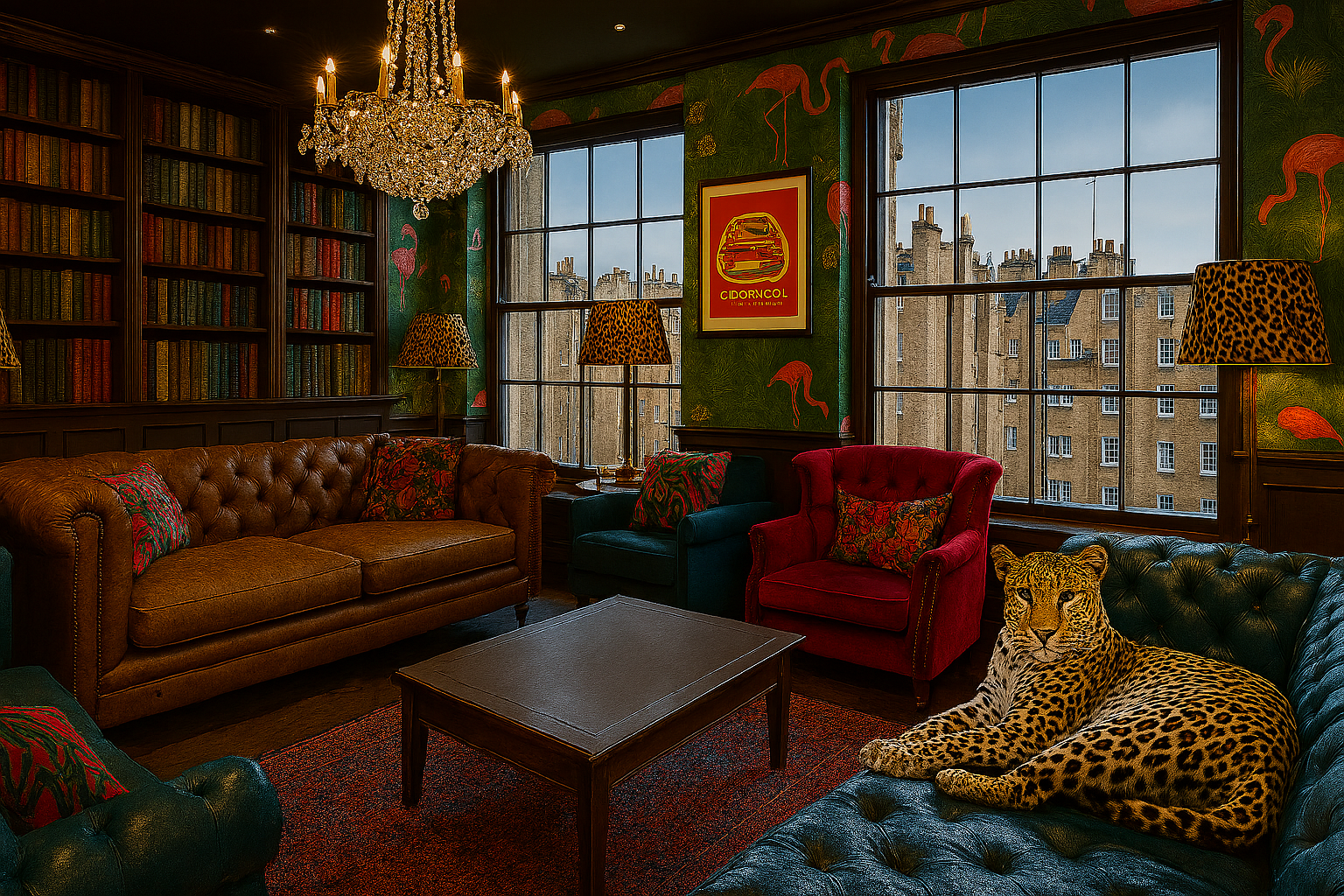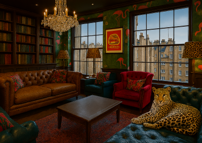 Designs are no longer limited to shirts. You can print on mugs, pens, large framed prints, and more. AI tools make branding and mock-ups fast and surprisingly effective. My AI collaborator helped me mock up a virtual photoshoot for garments on models. Yes, the word “orange” was misspelled on a ‘Clockwork Orange’ and the AI reinterpreted some of my designs, but hey, we didn’t exists 48 hours ago. The mood shots were brilliant. A fox walking past a “Dissident” poster and a mock up of a bohemian Mayfair apartment felt exactly like the world I wanted to make, maybe minus the leopard on the sofa.